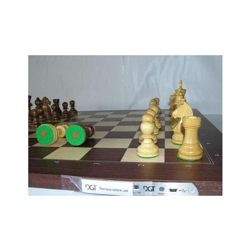 Szachownica elektroniczna DGT(wersja indywidualna)z funkcją Bluetooth umożliwiająca bezprzewodową komunikację z komputerem! W wyposażeniu zasilacz oraz niezbędne przewody + specjalne figury drewniane Staunton (Exlusive) z wbudowanymi czujnikami - król 95mm (produkcja Holenderska).Szachownica razem z zegarem DGT XL , umożliwia transmisję internetową partii szachowych oraz zapisywanie partii w komputerze.