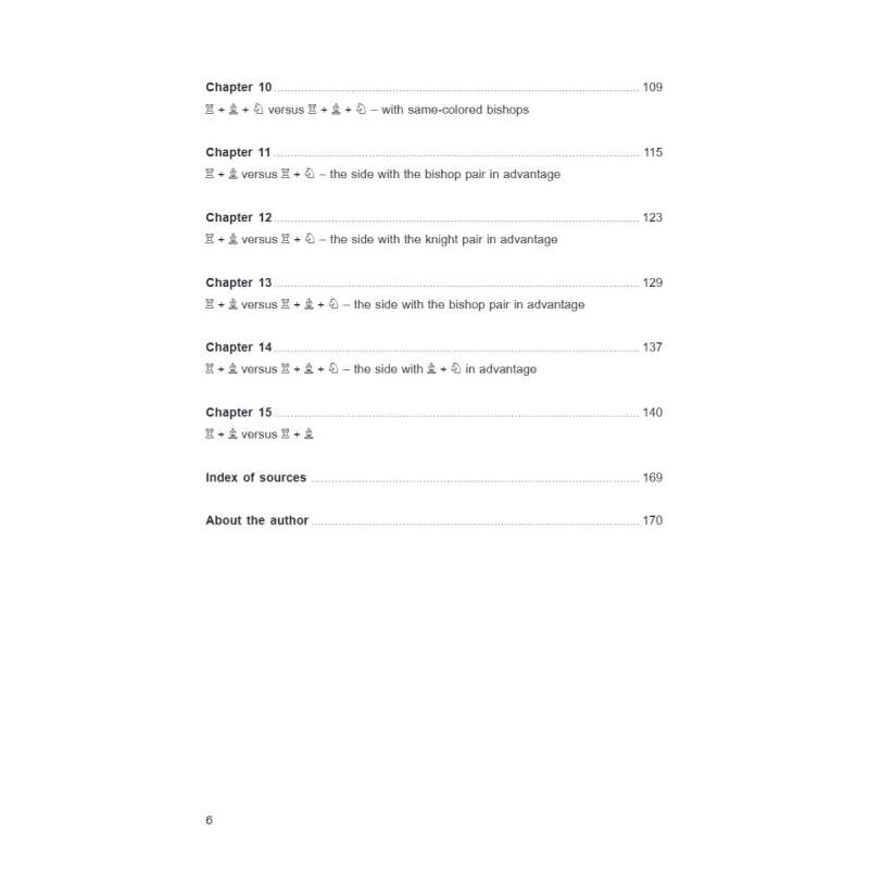 Dodatkowo książka obejmuje pozycje z dwiema wieżami i figurami lekkimi po każdej stronie. Często zachowują one wyraźny charakter gry środkowej – nie tylko ze względu na większy potencjał matowy, ale i liczniejsze możliwości taktyczne.