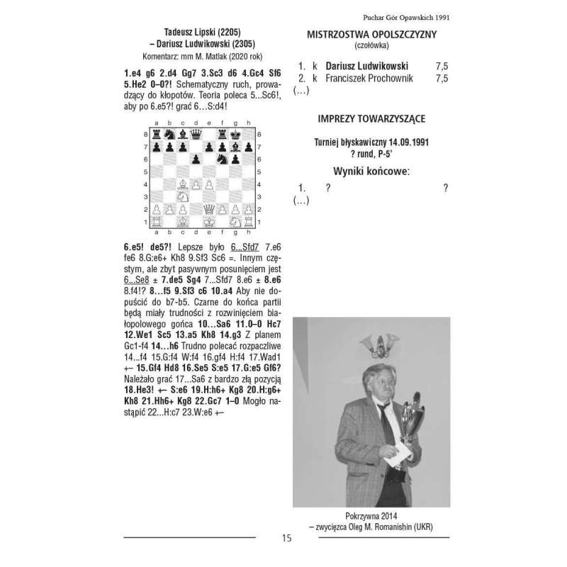 W ręce Czytelników trafia szczególna pozycja ukazująca trzydziestoletnią historię turniejów o Puchar Gór Opawskich. Najprawdopodobniej jest to pierwsze tego typu opracowanie w Polsce dotyczące długiej serii jednych zawodów, nie licząc wydarzeń centralnych, takich jak mistrzostwa Polski czy turnieje o „Złotą Wieżę”.