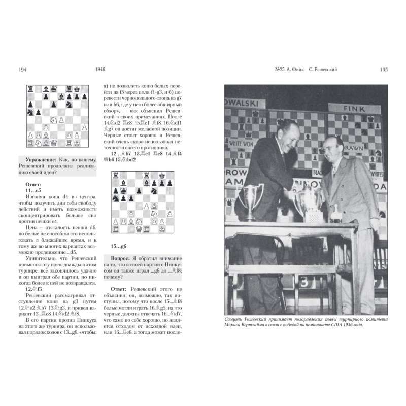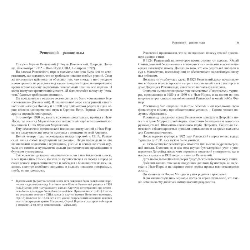 Dopiero po latach — a szczególnie podczas przygotowywania tej książki — uświadomiłem sobie wyjątkowość Reshevskiego. Przez trzydzieści lat był jednym z najsilniejszych szachistów na świecie i przez co najmniej dziesięć lat należał do pierwszej piątki. Inaczej też zacząłem patrzeć na wspomnianą wyżej książkę.