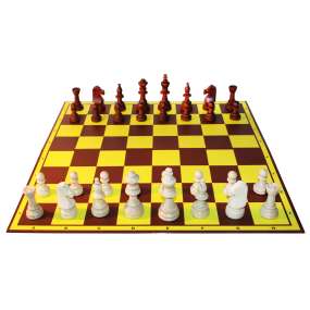 1. klasyczną, popularną w szkołach, klubach oraz podczas turniejów szachowych uniwersalną szachownicę tekturową składaną na dwa (o wymiarach 49 x 49 cm),