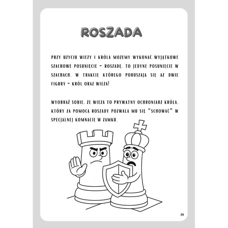 - krótkie i zwięzłe zasady wytłumaczone w sposób przyjazny i przystępny zarówno dla dzieci jak i niegrających w szachy rodziców, nauczycieli i opiekunów;
