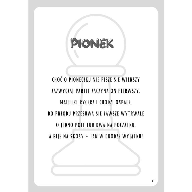 - rymowanki wprowadzające w świat szachów i tłumaczące w przyjemny sposób podstawy zasad szachowych;