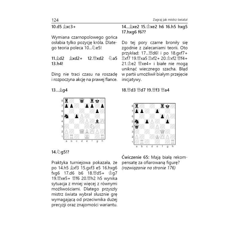 Taką technikę można oczywiście wytrenować poprzez systematyczne ćwiczenia. W tym celu przygotowałem w tej części 236 interesujących pozycji z praktyki turniejowej mistrzów świata do samodzielnej pracy. Poziom ich jest zróżnicowany pod względem trudności i tym samym posiadanych umiejętności szachowych. Dlatego każdy Czytelnik będzie miał możliwość sprawdzenia swej aktualnej formy w zakresie taktyki.