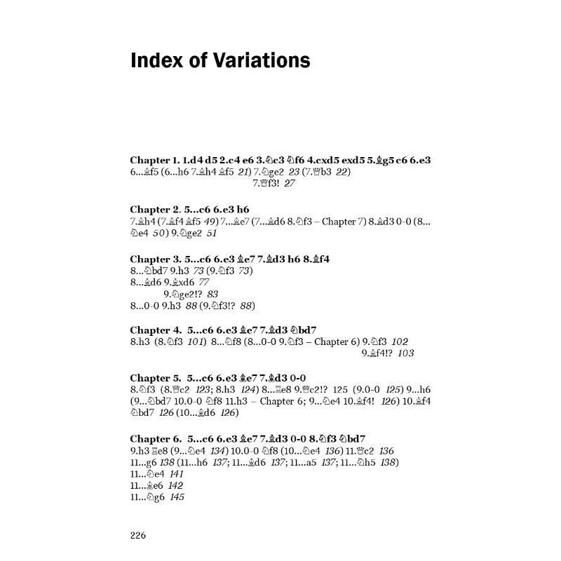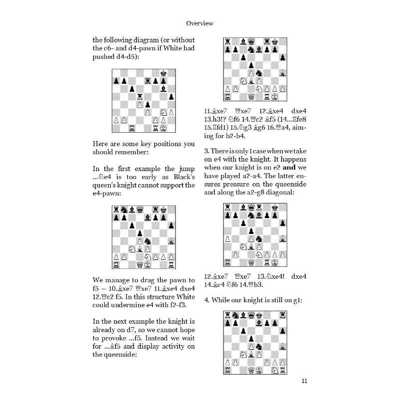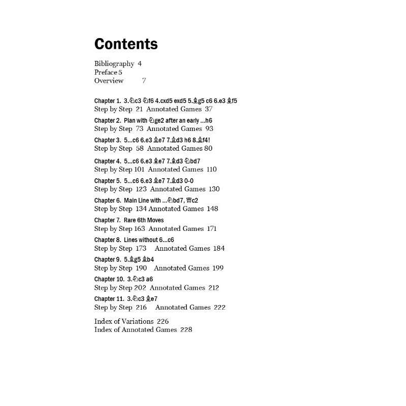 Lately second players tend to deviate from the traditional main lines and resort to 3...a6, 3...h6, 3...Be7, 5...Bb4 and other exotic set-ups, so the author analyses them in separate chapters.