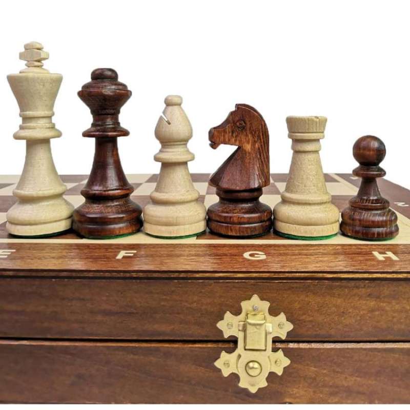 Szachy turniejowe składane nr 6 mahoń intarsja - (S-16/M)