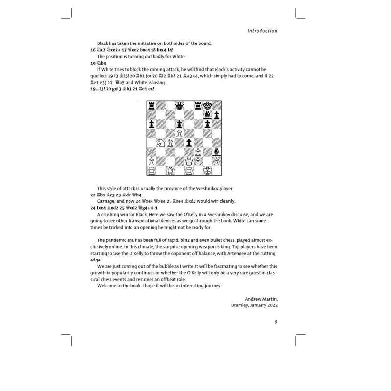 In Play the O’Kelly Sicilian, highly experienced chess author and coach Andrew Martin guides the reader through the complexities of the O’Kelly and carves out a repertoire for Black. He examines all aspects of this fascinating opening and provides the reader with well-researched, fresh, and innovative analysis. Each annotated game has valuable lessons on how to play the opening and contains instructive commentary on typical middlegame plans.
